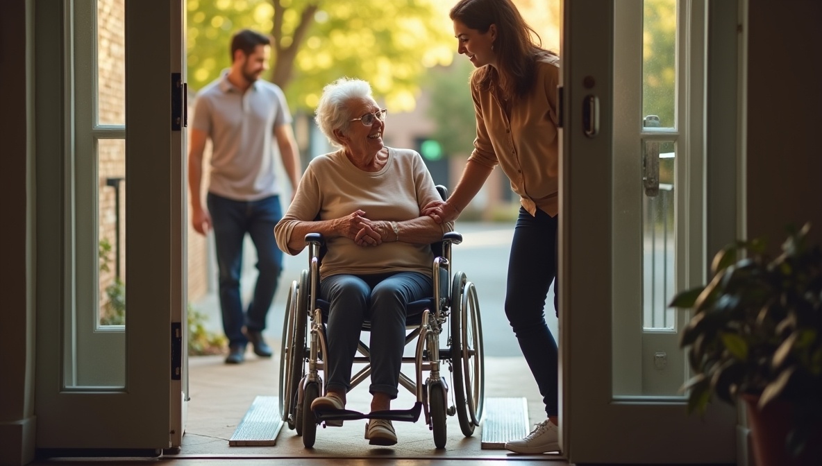 Когда пандус защёлкнулся в первое «клик», у меня внутри тоже защёлкнулось что-то живое. Я прокатила маму вверх медленно, в первый раз — как будто училась ходить. Мама смотрела на нас снизу вверх — с новой высоты — и улыбалась.