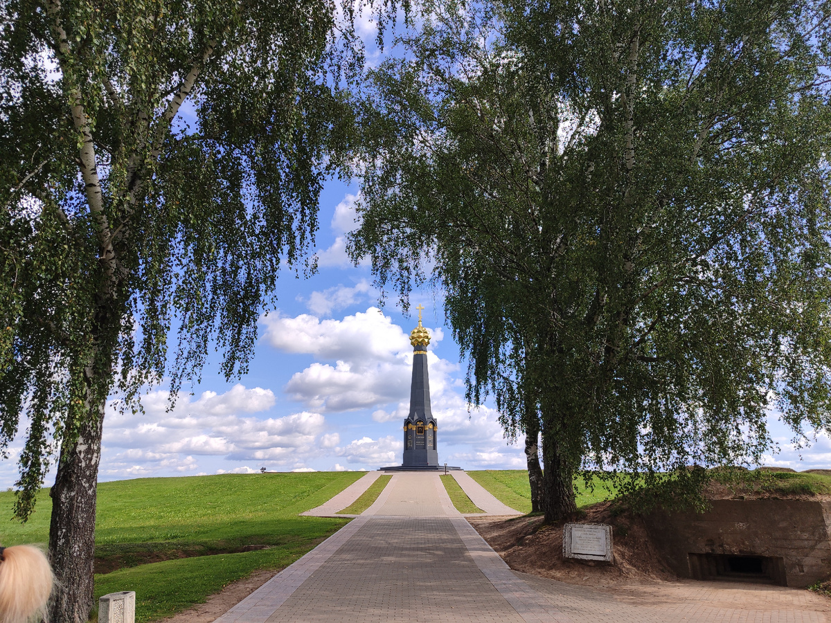 Москва, спаленная пожаром, французу отдана?" Именно благодаря бессмертному произведению Лермонтова, известному каждому со школьной скамьи, из трёх великих ратных полей России первым в голову приходит именно Бородинское. В моём сегодняшнем рассказе не будет хронологии исторических событий Отечественной войны 1812 года. И я не покажу вам даже малой части великолепных памятников, установленных здесь благодарными потомками в память о тех событиях. Их сегодня более двухсот. Мы просто пройдём и задержимся около некоторых из них. Площадь музея-заповедника "Бородинское поле", находящегося к западу от Можайска, составляет около ста десяти квадратных километров, и гулять по нему, думаю, можно бесконечно.