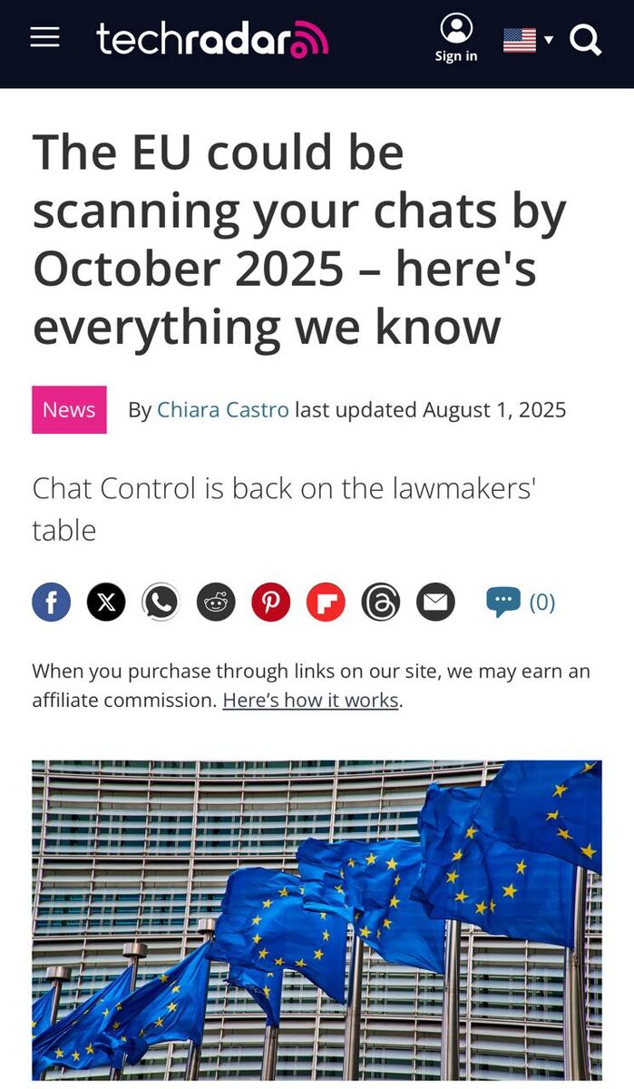 В Европе собираются проверять каждое сообщение — ЕС на пороге тотального контроля всех переписок Политики хотят обязать мессенджеры «просматривать» всю переписку пользователей, включая защищённые чаты. На бумаге это выглядит как защита детей от сомнительного контента (классика жанра). На деле жк шифрование вообще перестаёт работать, а любая переписка может просматриваться. Сразу пятнадцать членов-государств ЕС уже подержали введение контроля и только три выступили против, девять пока не решили — итог ожидается уже 14 октября. Типа свободная Европа…