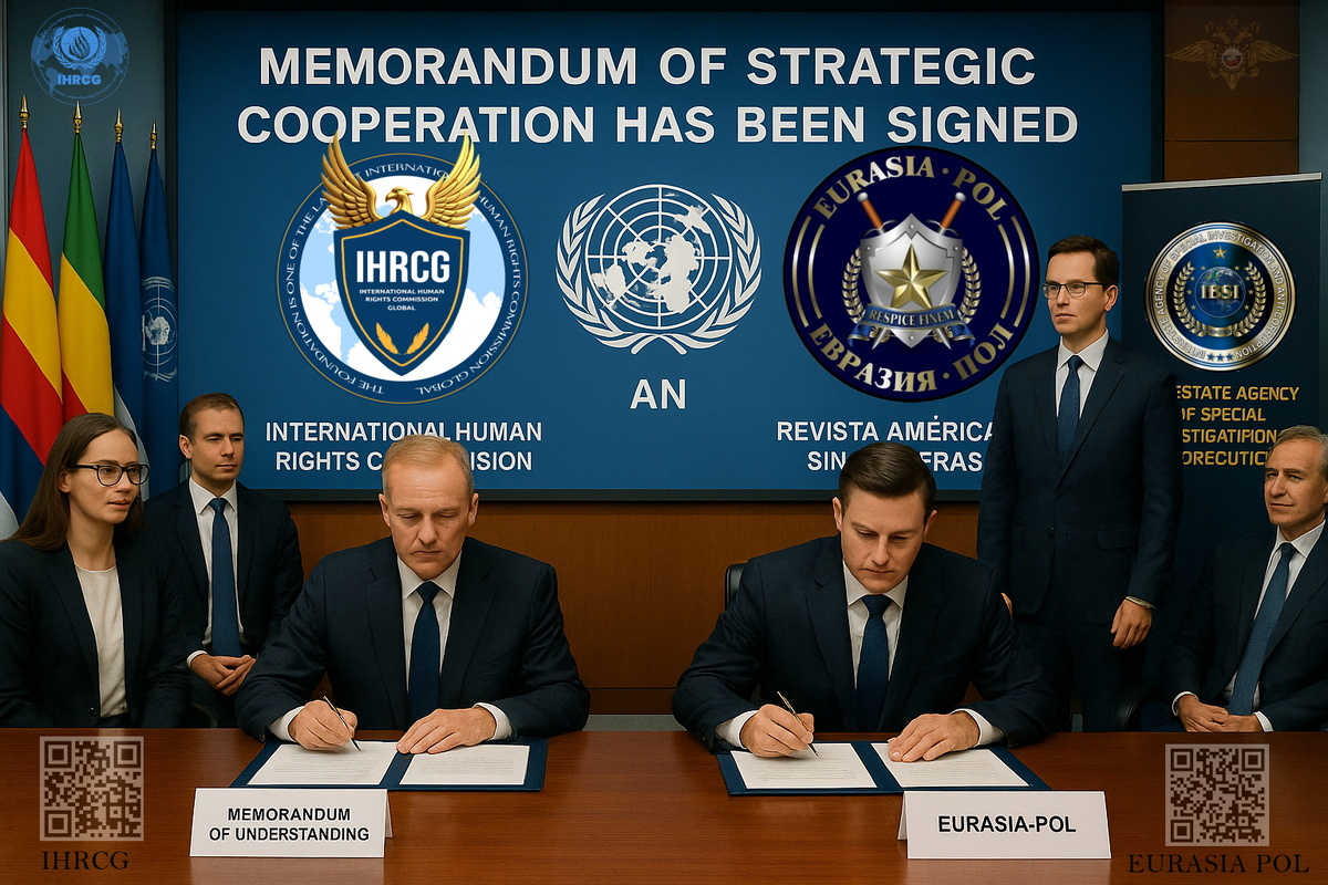 ПОДПИСАНИЕ МЕМОРАНДУМА СТРАТЕГИЧЕСКОГО СОТРУДНИЧЕСТВА En 200825 20 августа 2025 года состоялось по-настоящему историческое событие — подписание Меморандума стратегического сотрудничества между: Специализированной международной автономной экспертно-аналитической некоммерческой правоохранительной организацией «Межгосударственное агентство специальных расследований и противодействия коррупции»; Международной комиссией по правам человека Global (International Human Rights Commission Global) Журналом «Америка без границ» (Revista América Sin Fronteras). Данный документ является не просто соглашением о намерениях, а закрепляет фундаментальное и долгосрочное взаимодействие сторон, направленное на формирование прочного международного альянса в сфере защиты прав человека, укрепления верховенства закона и противодействия коррупции на всех уровнях. В рамках Меморандума стороны выразили готовность совместно действовать в таких ключевых направлениях, как: Подписание этого Меморандума стало ярким св