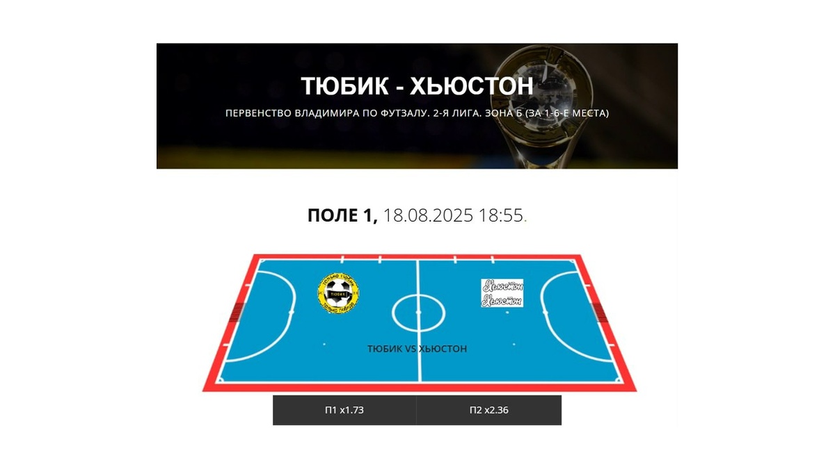 Первенство Владимира по футзалу. 2-я лига. Зона Б (за 1-6-е места) 18.08.2025 г. Тюбик - Хьюстон 3:1 (3:0) Обзор