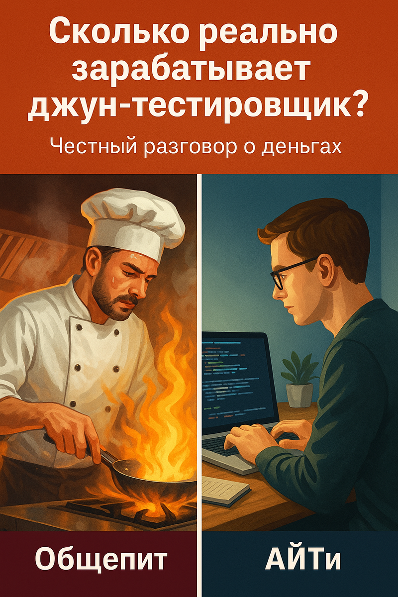 Многие думают: уйду в IT — и деньги просто некуда будет девать. Лента забита историями «прошёл курсы за три месяца — сразу получу оффер в 150к», красивые скриншоты, громкие обещания, но это все иллюзия. В IT не стоит идти ради денег — здесь так не работает. Здесь платят не за сам факт смены профессии, а за навыки, пользу для продукта и ответственность. На старте часто скромно, а рост приходит, когда вкладываешься в учёбу, практику и делаешь дело чуть лучше вчерашнего, по факту – ты вкладываешь все это, в свое будущее. Если бежать только за цифрой — почти гарантировано разочарование; если идти за ремеслом — деньги подтянутся следом. У меня получилось именно так: ожидал одно, получил другое, но в итоге не пожалел. И да, я не стаю на месте, а развиваюсь дальше 💸 Сколько я зарабатывал в ресторане Я работал поваром больше 13 лет. Средняя зарплата на 2020 год — 25–35 тысяч рублей, у обычного повара. Иногда чуть больше, если везло с местом или удавалось взять подработку. Но за этими деньгами