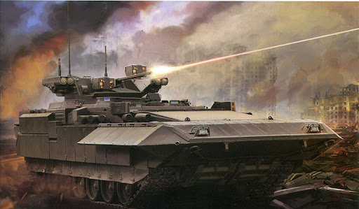 Это про Т-15. Ставим 57-мм «Кинжал» - и разговор идёт на других дистанциях, в другом тоне. Т-15 — тяжёлая БМП на базе «Арматы»: двигатель спереди, люди сидят в капсуле, десант выходит через корму. Сверху - КАЗ, по периметру - серьёзная броня. Мосты и грязь - не отговорка, а рабочая среда. Смысл простой: пехота идёт с танком в одном боевом порядке и живёт там, где лёгкая броня уже лишь декорация. Модуль необитаемый. Пушка 57 мм - быстрая, жёсткая, с солидным осколочным «послевкусием». Рядом - спаренный ПКТМ. По бортам - пусковые под ПТУР «Атака». Боекомплект не бесконечный, зато качественный. Башня тяжеловата, не спорю. Зато без компромиссов по эффекту: бетон, кирпич, лёгкая броня - получают своё. Дальность. Управление огнём на рубежах, где 30-мм уже «плюётся», а ПТУР тратить жалко.