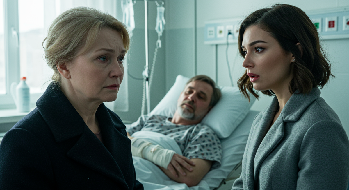 Марина замерла. Улыбка сползла с ее лица. Она смотрела то на Елену, то на Андрея, который, казалось, сейчас провалится сквозь больничную койку. Девочка испуганно прижалась к ней.