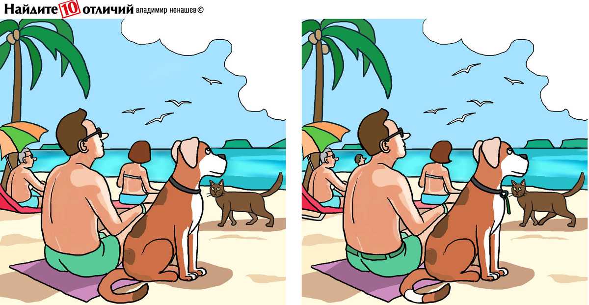 Всем привет! В сегодняшнем рисунке мы на море. На пару минут поразгадывать отличия и посидеть мысленно на песочке.