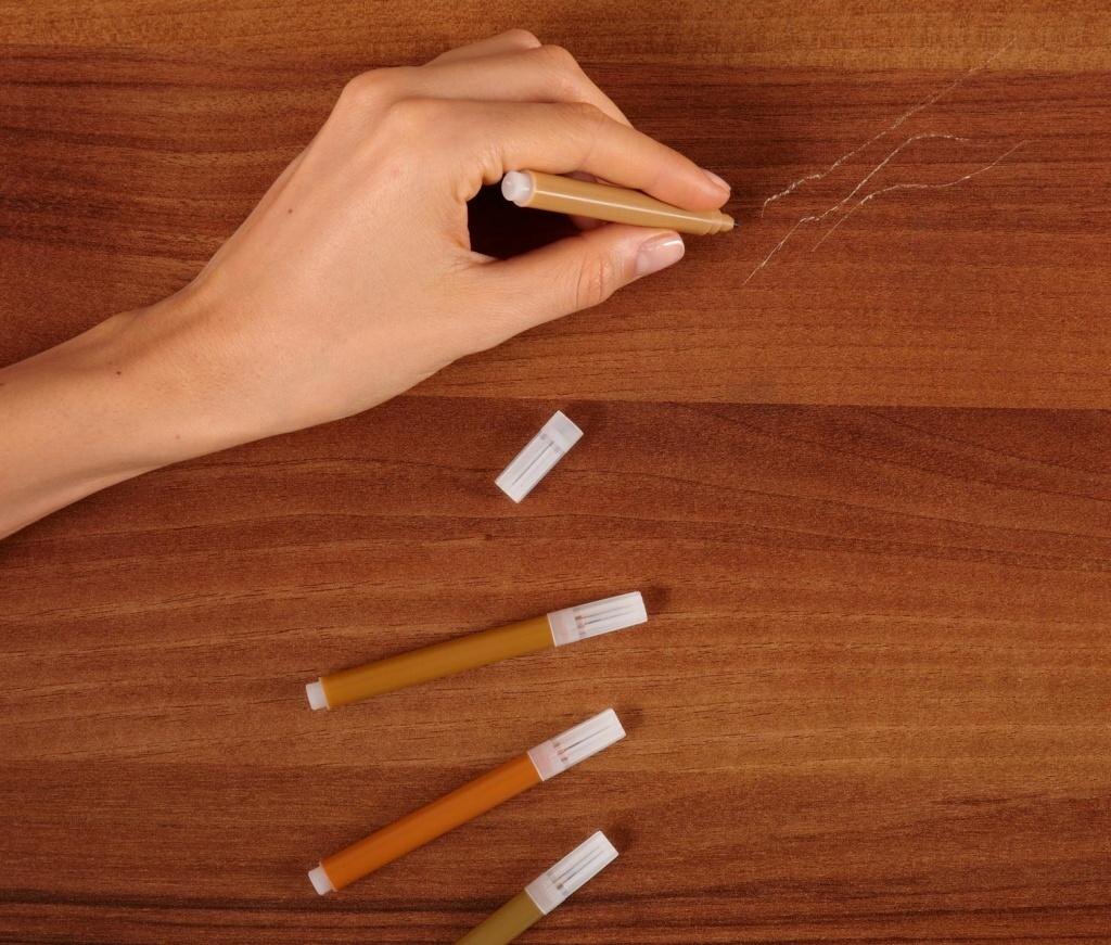 Знакомая картина: задели стул, уронили вазу, кот устроил забег по столу – и вот он, предательский скол! Белеет или контрастирует, мозолит глаза и портит весь вид любимой тумбочки или столешницы. Бежать в магазин за специальной шпаклевкой? Вызывать мастера? Не торопитесь! Сегодня мы делимся с вами супер-экспресс лайфхаками, чем срочно и бюджетно замазать скол, используя то, что почти всегда есть под рукой. Это не идеальная реставрация "на века", а скорее "скорая помощь"! ТОП-5 Подручных "спасателей" от скола: Восковой мелок (мебельный или детский) Как: Возьмите мелок максимально близкого оттенка к вашей мебели. Просто потрите им интенсивно по сколу, втирая воск в углубление. Излишки аккуратно снимите пальцем, жесткой стороной губки или даже ногтем, растирая по направлению древесного волокна. Для глубины можно чуть расплавить кончик мелка зажигалкой и капнуть в скол, но осторожно! Лак для ногтей Как: Роемся в косметичке! Ищем лак максимально подходящего цвета. Не нашли точный? Смешиваем
