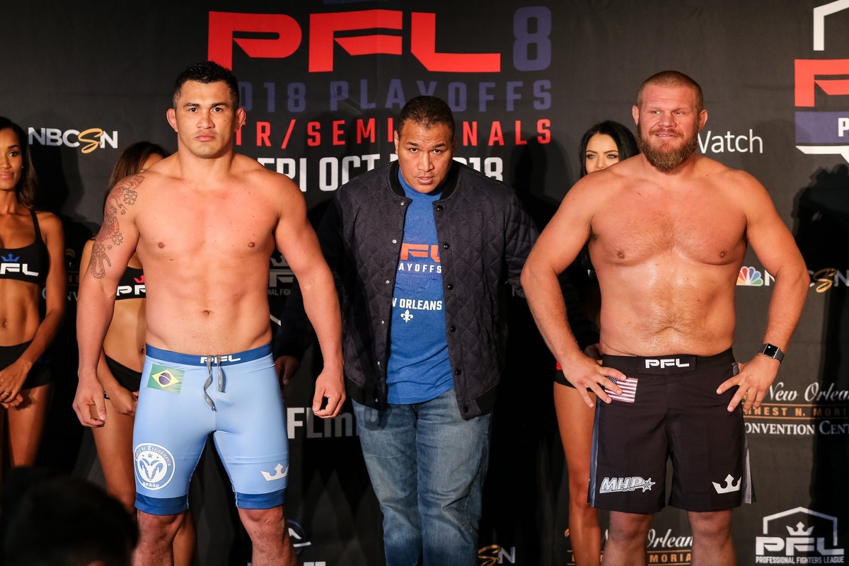 автор Ева Китаева/фото архив героев публикации, заглавное фото: Франсимар Баррозо (слева) перед боем с Джошем Коуплендом, лига PFL, 2018 год
