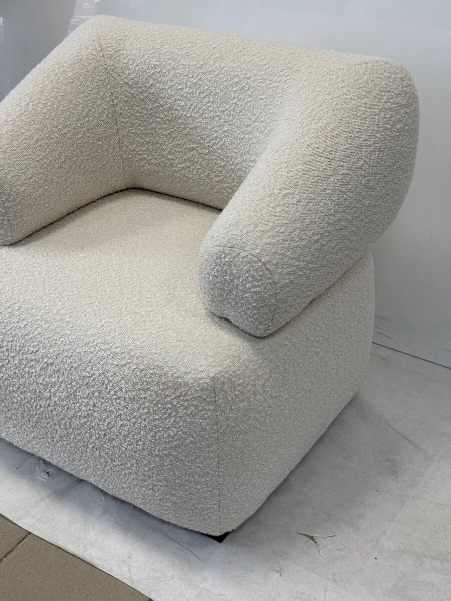 Кресло выполнено из ткани премиум ткани - букле в белом цвете.