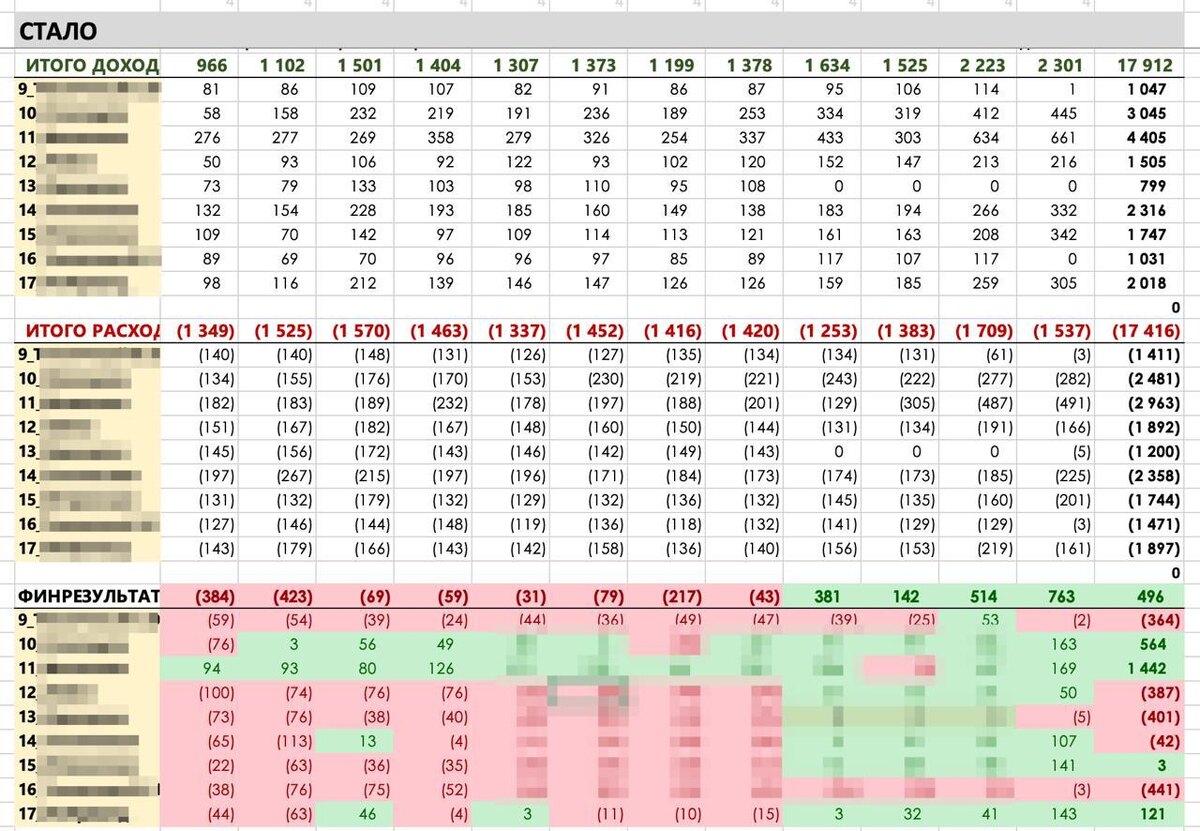 🔍 Интересуют нас не доходы, не расходы и даже не конкретные точки, а финансовые результаты, которые представлены в нижней части таблицы.