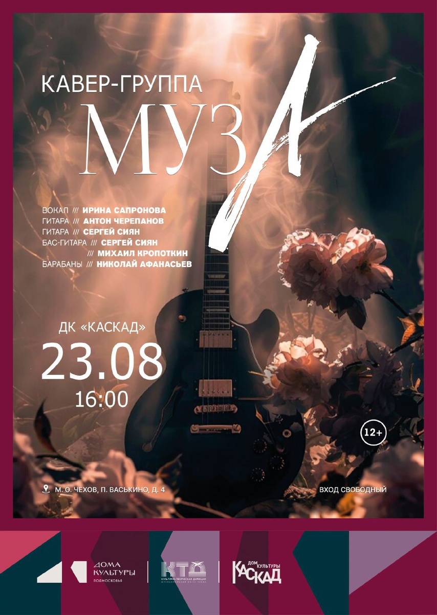 ✨ Музыкальная встреча с кавер-группой "МузА" Приглашаем всех друзей и жителей микрорайона Чехов провести чудесный вечер вместе с нами! В ближайший выходной наш Дом культуры приглашает вас окунуться в атмосферу живого исполнения любимых хитов в исполнении группы «МузА». Это отличный шанс отдохнуть душой, спеть любимые песни и зарядиться позитивом накануне нового учебного года ❤️ ✅ Что: концертная программа с живым звуком ⭐ Для кого: зрителей старше 12 лет 🎟 Цена билета: бесплатно! Вход открыт для всех желающих 📌 Место проведения: ДК «Каскад», пос. Васькино, дом №4 📖 Время начала мероприятия: суббота, 23 августа 2025 г., в 16:00 часов Приходите всей семьей и заряжайтесь положительными эмоциями вместе с «МузА»! ✨ 👉 Прислать новость 💥 Проект "Чехов Детям"