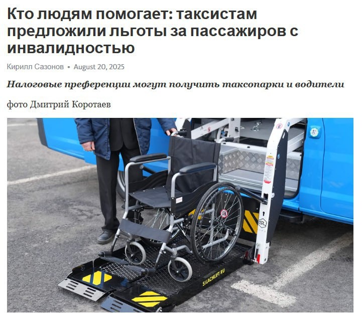 Льготы за инвалидов Сервис заказа такси «Максим» направил на имя председателя комиссии Госсовета РФ по направлению «Эффективная транспортная система», главы Республики Бурятия Алексея Цыденова, письмо (копия имеется в распоряжении «Известий») с предложением о введении системы поощрений за перевозку инвалидов. В середине июля президент России Владимир Путин дал поручения правительству и Госсовету разработать такую систему до 1 декабря текущего года. 🌐 **__подпишись, 💬 обсуди, 🤝 boost**__ Ваш таксопарк: «Высокий спрос» 🚕 89697774262 📲 Комиссия от 1% 💰 (Подключаем ко всем фирмам такси и доставки) 🚗📦 #такси #водитель #курьер