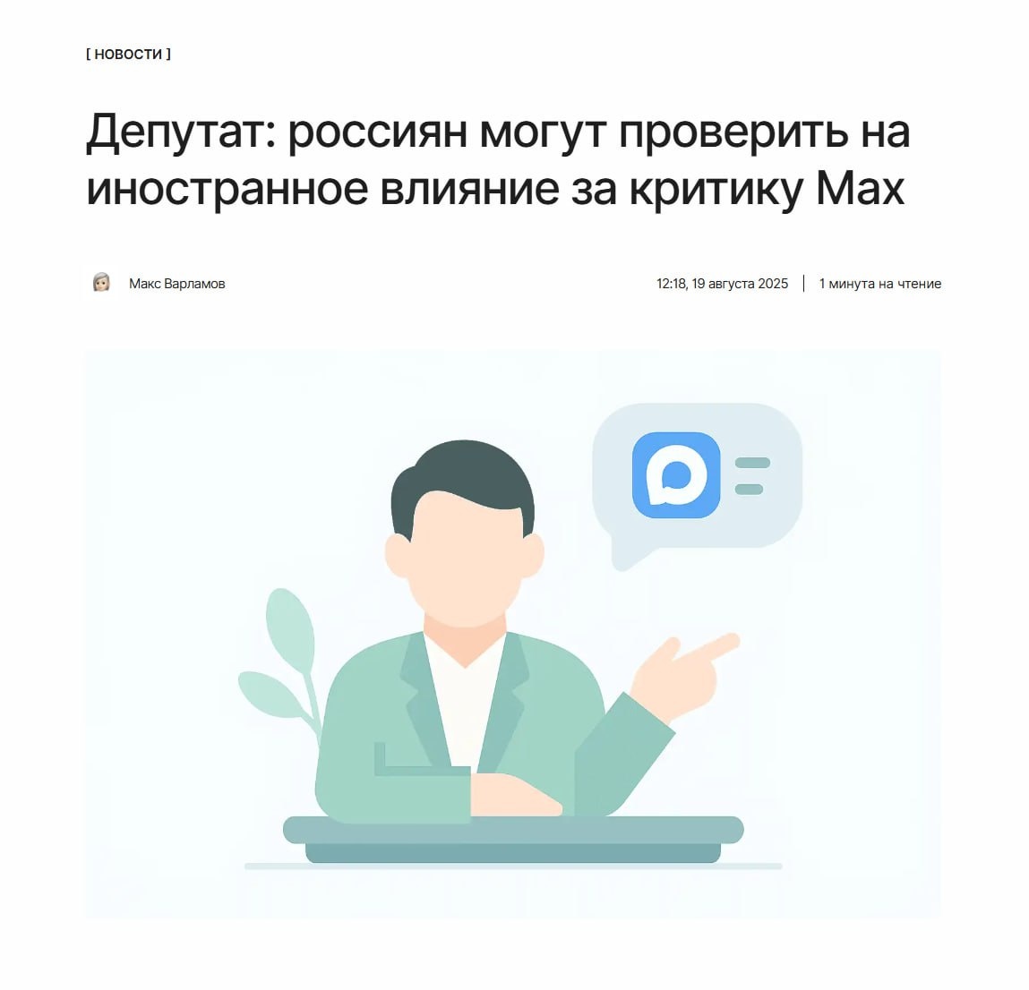 Публичная и необоснованная критика Max может стать причиной для проверки на иностранное влияние — так считает депутат Госдумы