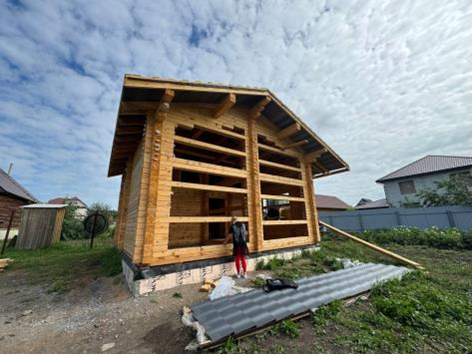 Дом в стадии стройки, выполнен из бруса, вид конструкции – дом из древесины естественной влажности (профилированного бруса). При ближайшем рассмотрении невооруженным глазом заметны зазоры в местах соединений брусьев размером от 5 до 10мм, а также несквозные трещины снаружи и внутри дома длинной от 1740 мм до 1940мм, шириной до 5мм. Тип соединения «шпунтгребень» с пазом для плоского уплотнителя.