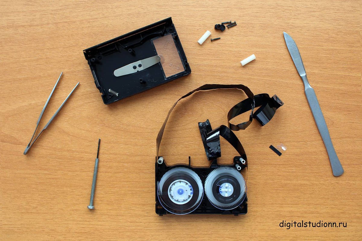 Ремонт кассеты, приведение в рабочее состояние перед оцифровкой. На фото: VHS Compact, 1990-е годы