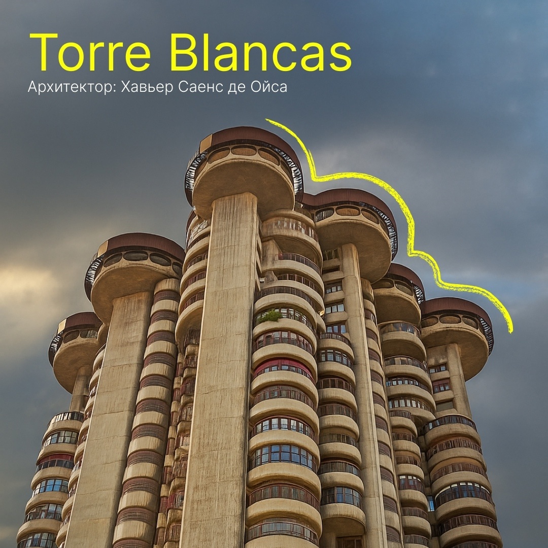 Жилой комплекс «Белая Башня» (исп. Torres Blancas) - считается лучшим примером испанской органической архитектуры и одним из ярких проявлений этого стиля в мире. Интересна и сама концепция постройки. Перед Саенз де Ойза стояла задача создать уникальный проект высотного здания. Архитектор пришёл к идее создать ощущение, будто здание вырастает из-под земли естественно, «органически», как дерево. Вертикальные конструкции — лестницы, лифты и лифтовые шахты — были символическими венами, сосудами, которые связывали «дерево» с землей. Изначально по проекту было 2 башни, но в итоге воплощена была только одна. Башня имеет высоту в 81 метр, состоит из 23 этажей, распределенных большей частью под квартиры и офисы. На каждом этаже дома стандартные прямоугольные помещения сгруппированы с округлыми, что, должно быть, заставило владельцев потратить немало времени на заказ мебели, подходящей для изогнутых стен. На двух верхних этажах находится ресторан и сад с бассейном на крыше. А вы бы смогли жить в