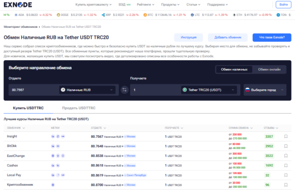 Мы детально разберем как популярные оффлайн-обменники (включая топовые пункты: EastChange, BitOkk, Insight и Криптообменник). А чтобы ваш выбор был на 100% уверенным, мы научим вас, как проверять надежность любого сервиса на независимой платформе Exnode — самом важном инструменте для тех, кто ценит свою финансовую безопасность.