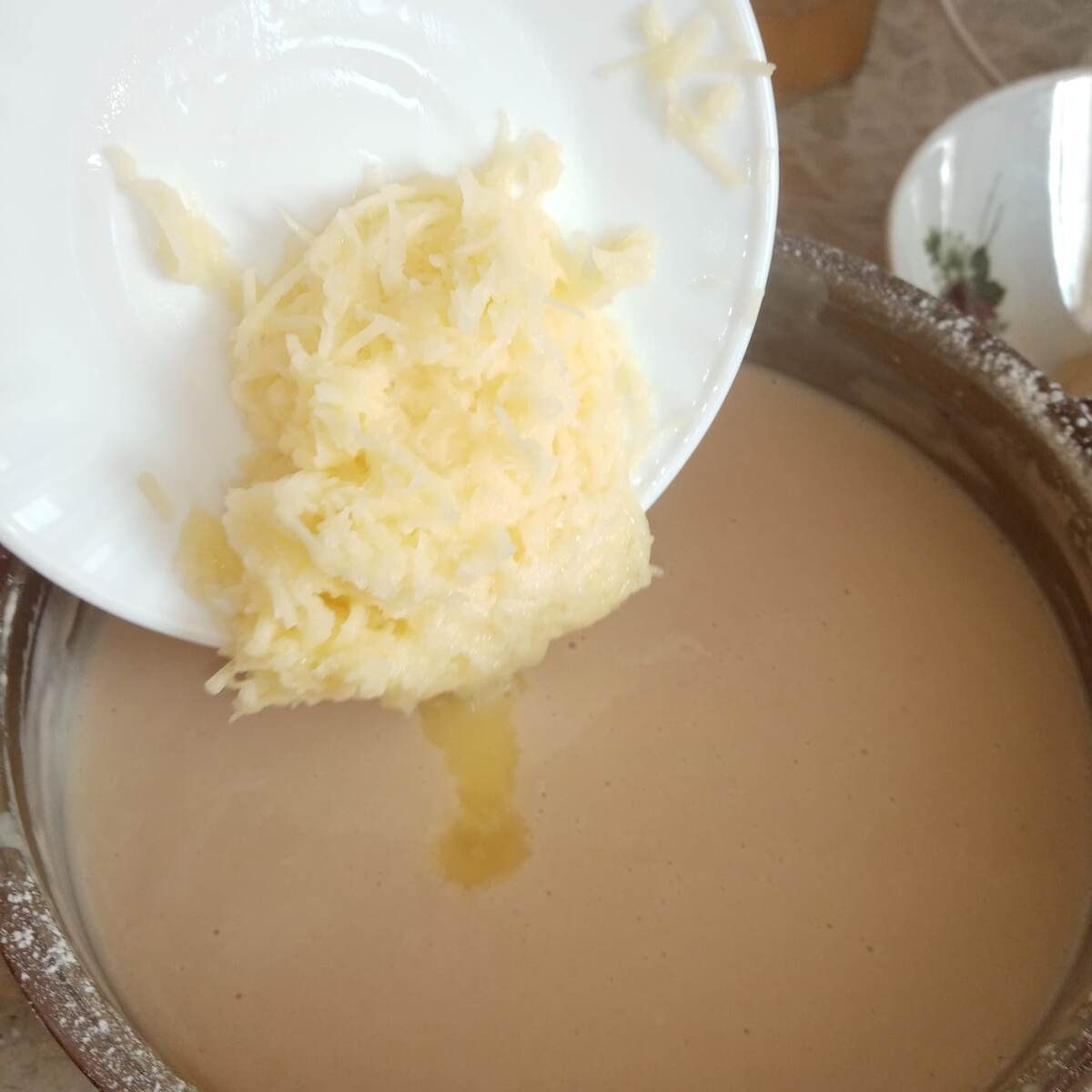 Не переборщите с количеством картофеля, чтобы он не повлиял на текстуру теста. Обычно достаточно небольшого кусочка.