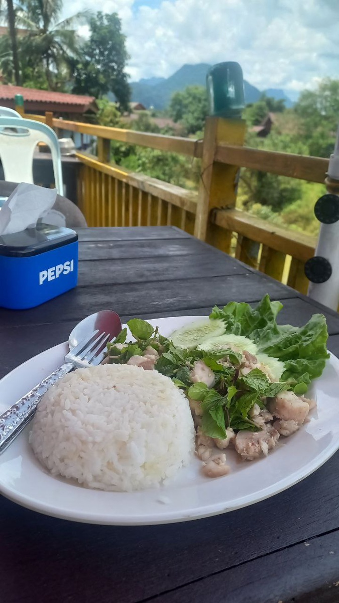 Традиционная лаосская еда Это блюдо традиционное лаосское Larb, бывает со Sticky rice бывает Steam rice, начинка рыба и базилик, салат. Заказал, уезжая из Вангвьенга, #Лаос