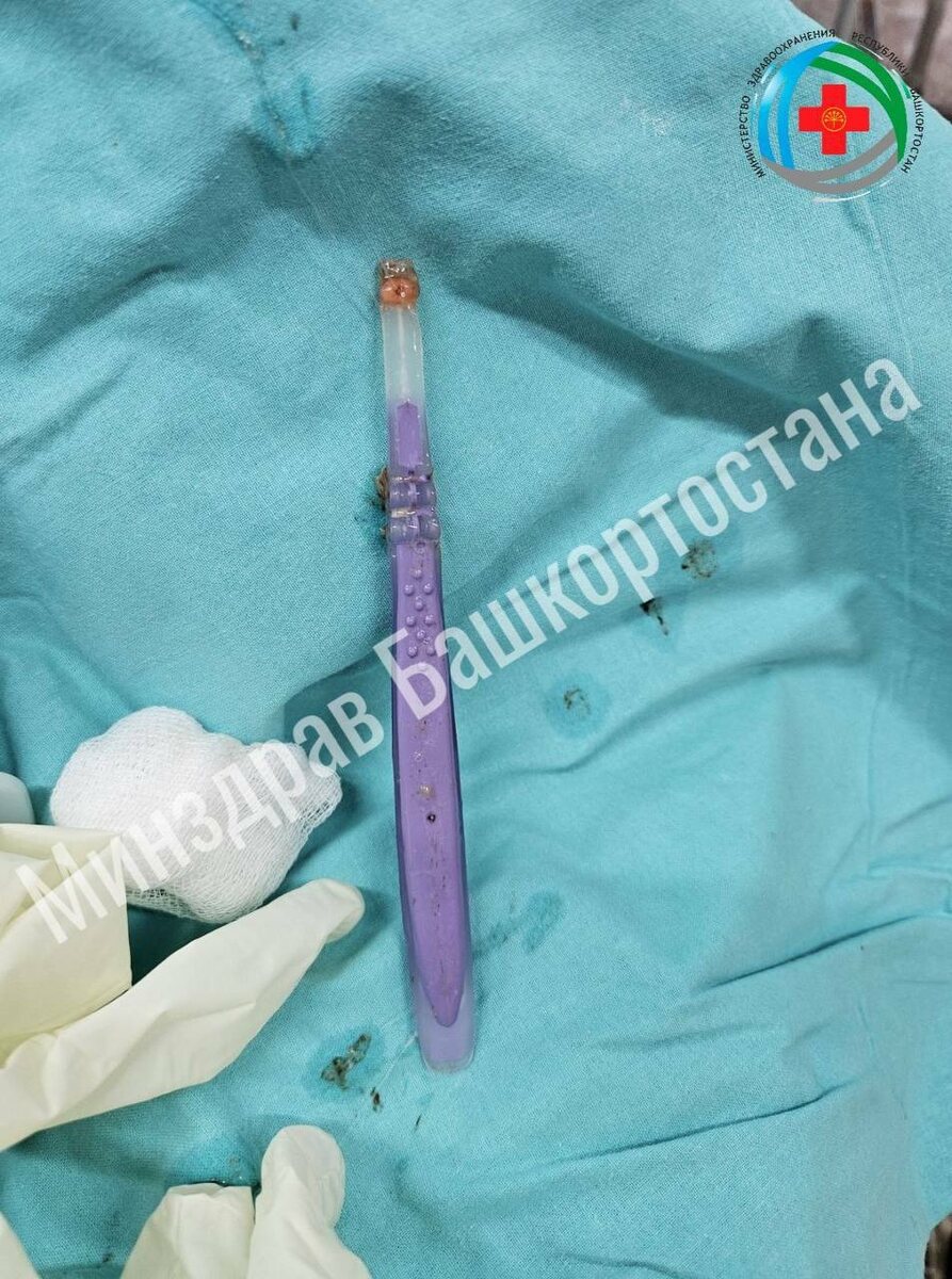 Врачи больницы №8 Башкирии извлекли из пищевода пациента зубную щетку, которую он проглотил во время чистки зубов Врачи больницы №8 Башкирии извлекли из пищевода пациента зубную щетку, которую он проглотил во время чистки зубов. В срочном порядке мужчину доставили в ГКБ №8 на скорой помощи. Врачи-эндоскописты успешно провели операцию под анестезией. Пациента выписали без осложнений в тот же день.