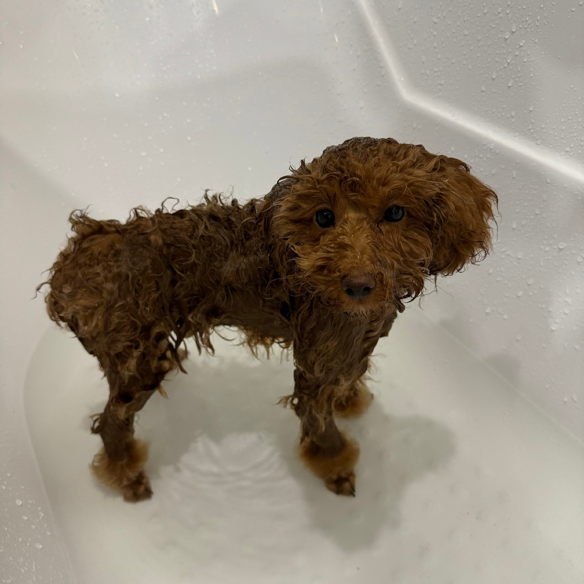 • Что делать: Используй тёплую воду и специальные шампуни для собак. Поливай собаку медленно, избегай резких движений и шума.