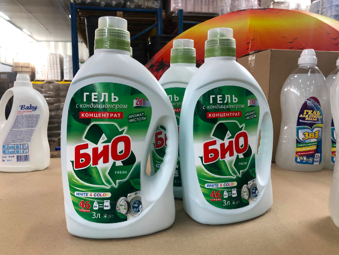 Начну с бытовой химии. В продаже появился гель для стирки БиО Fresh 2 в 1, рассчитанный и на белое, и на цветное бельё. Объём тары – три литра, одной упаковки хватает примерно на сорок шесть стирок. 230 руб