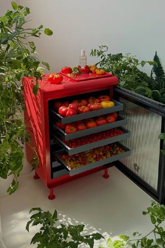 Бренд косметики Malin+Goetz и производитель винных холодильников Rocco сделали лимитированную серию холодильников для вина помидоров, в цвете помидоров. Собственно, кроме цвета – ничего нового, но какая классная рекламная кампания: зачем хранить вино (лучше его пить), если можно в этот шкафчик класть томаты! Суперумный холодильник оснащён всем необходимым: точный контроль температуры, светодиодная подсветка с регулируемой яркостью, а в подарок к нему идёт спрей для дома с томатным ароматом (мне точно такой нужен) от Malin+Goetz. Цена удовольствия — 1795$ или 320 кг помидоров у дяди Гусейна на Преображенском рынке. 🧂 @saltmagazine