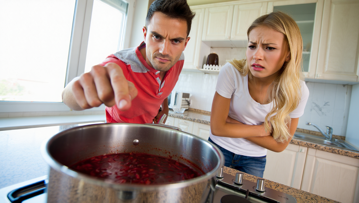 Катя стояла у плиты и помешивала борщ, когда в кухню зашел муж. Дмитрий принюхался и сразу же нахмурился.