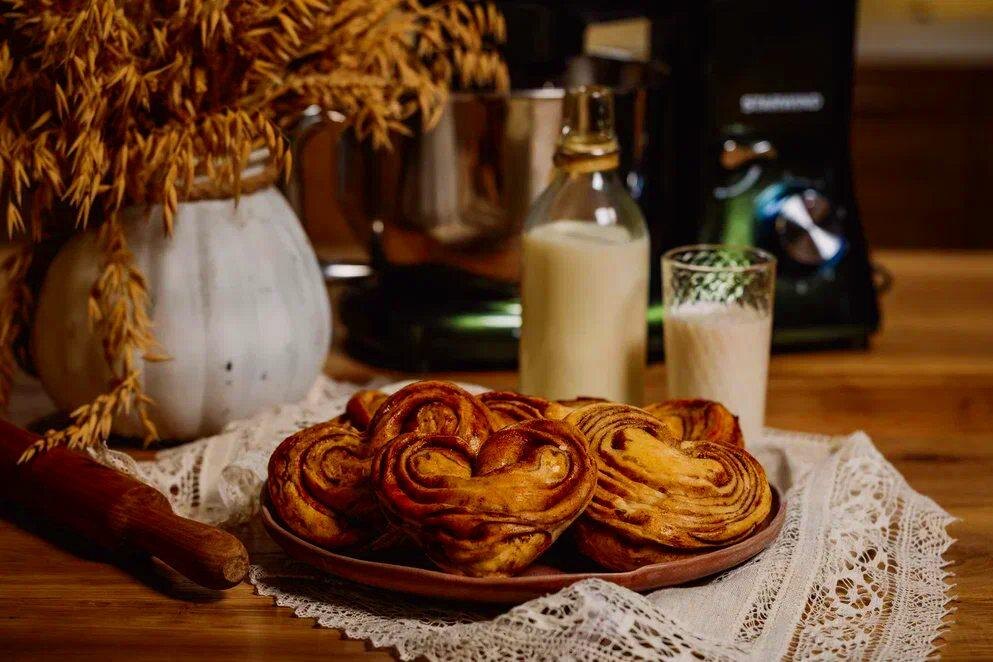 Как испечь плюшки-сердечки, которые покорят любое сердечко Дорогие любители сладкого и не только! Сегодня расскажу вам, как превратить обычное тесто в оружие массового очарования. А именно — в плюшки-сердечки с корицей и сахаром. Предупреждаю: после этого рецепта ваша кухня превратится в кондитерскую, а холодильник — в склад любви! Знаете, что общего между плюшками и любовью? Они оба заставляют нас таять! А если серьёзно, то плюшки-сердечки — это не просто выпечка, это настоящее произведение искусства, способное растопить даже самое чёрствое сердце. И пусть кто-то скажет, что они очень напоминают заморские сининбоны, я не вижу ничего общего. Мои плюшки – по бабушкиному рецепту. Разве что корицу она не использовала. Для теста: Мука — 500 г (не жадничайте, но и не перебарщивайте) Молоко — 260 мл (тёплое, но не горячее — тесто не любит истерик) Дрожжи — 7 г (сухие, активные, готовые к подвигам) Сахар — 50 г (для теста, не для талии) Яйцо 1 шт. Масло сливочное — 50 г (мягкое, но не растопл