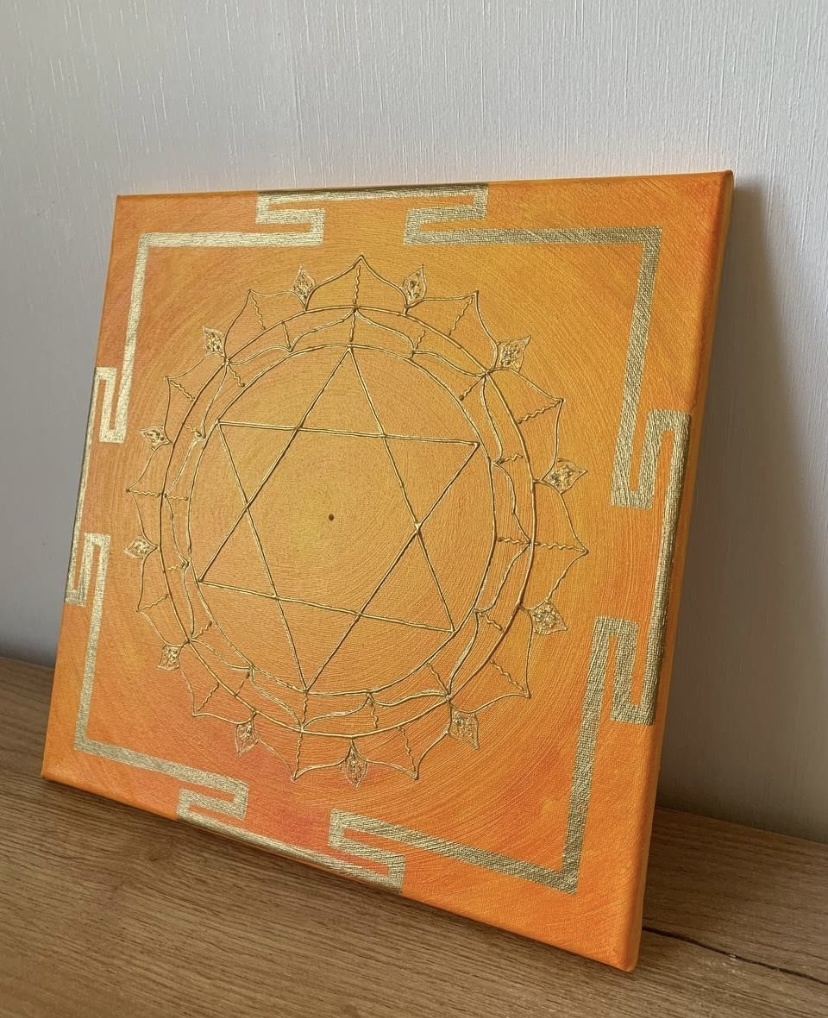 ☀️ Создана символично, в воскресенье - день Солнца. Янтра Солнца - одна из самых высоковибрационных янтр. Соединяет нас с Духом, Богом и наполняет нас уверенной радостью, Ясностью, Энергией, Желанием к Жизни. Прочь депрессия и неуверенность💫 Наличие такой картины в доме актуально особенно для тех, у кого Солнце в натальной карте ослаблено или в данный момент, в целом, в силу обстоятельств, преобладает растерянность, пессимистичные мысли - послужит инструментом и возможностью прокачать Солнечную Энергию и усилить ее ☀️ Размер на заказ можно будет сделать побольше На видео холст 30х30 см Ваши ощущения от янтры?