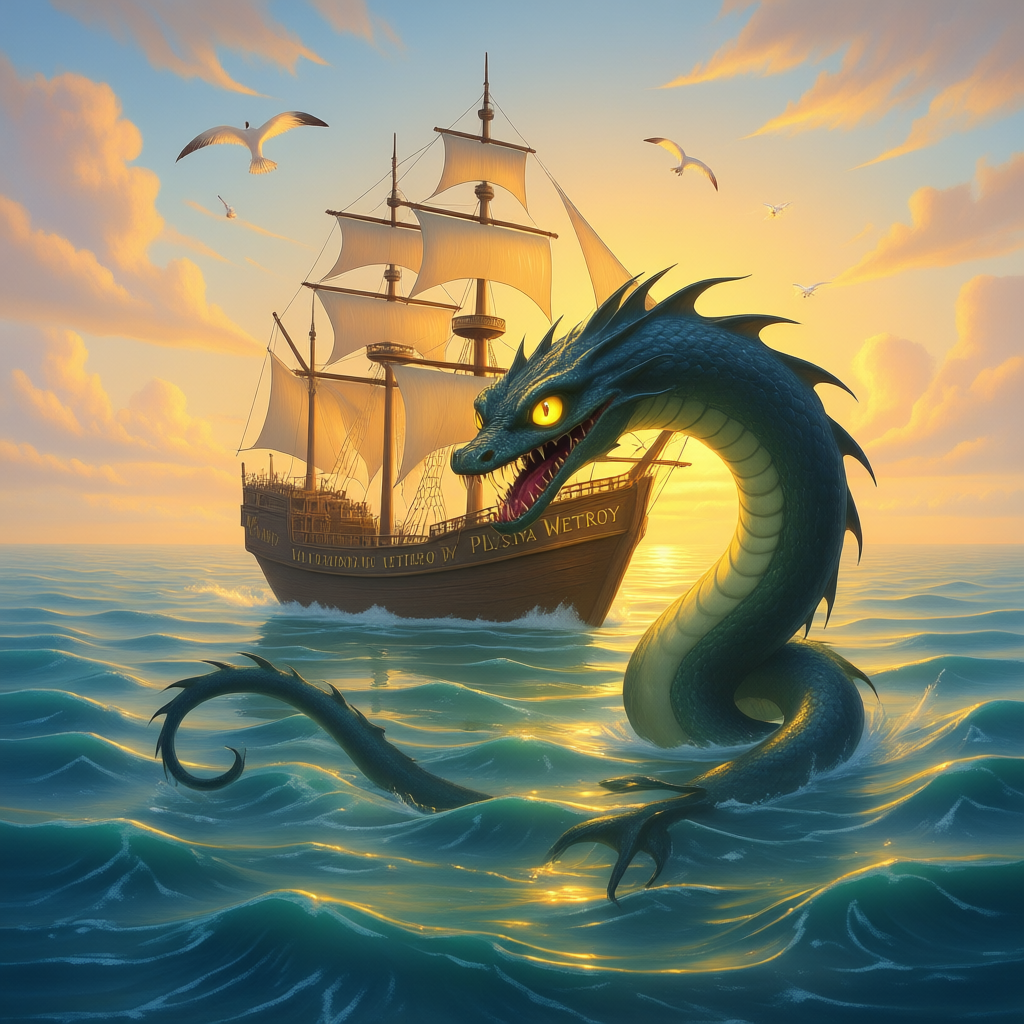 – Всем привет, с вами Бася! Вот вам сказка, а мне косточек связка! Морской змей ударил своим мощным хвостом по днищу «Плясуньи ветров». Палуба загудела от криков и топота – кто-то едва удержался на ногах, кто-то схватился за реи, а Юнга с визгом проскользил по мокрой доске до самого люка. – Да он же нас перевернет! – заорал Шнырь, сжимая веревку. – Не стрелять! – рявкнул Мар, заметив, как матросы уже кидаются к пушкам. – Пока не поймем, чего он хочет! Змей медленно снова опустил голову, скользнул по поверхности воды, обдав всех теплым и тяжелым запахом моря и водорослей. Он будто принюхивался. Диск в руках Мара забился сильнее – теперь он словно пульсировал в такт биению сердца существа. Фью, нахохлившись, поднялась на задние лапки и что-то быстро прокричала на своем грызуньем. Юнга в ответ громко гавкнул трижды, затем длинно завыл. Змей замер, желтый глаз чуть сузился, а потом он… ответил. Это был глубокий, протяжный звук, от которого по палубе пробежала дрожь, а вода вокруг пошла