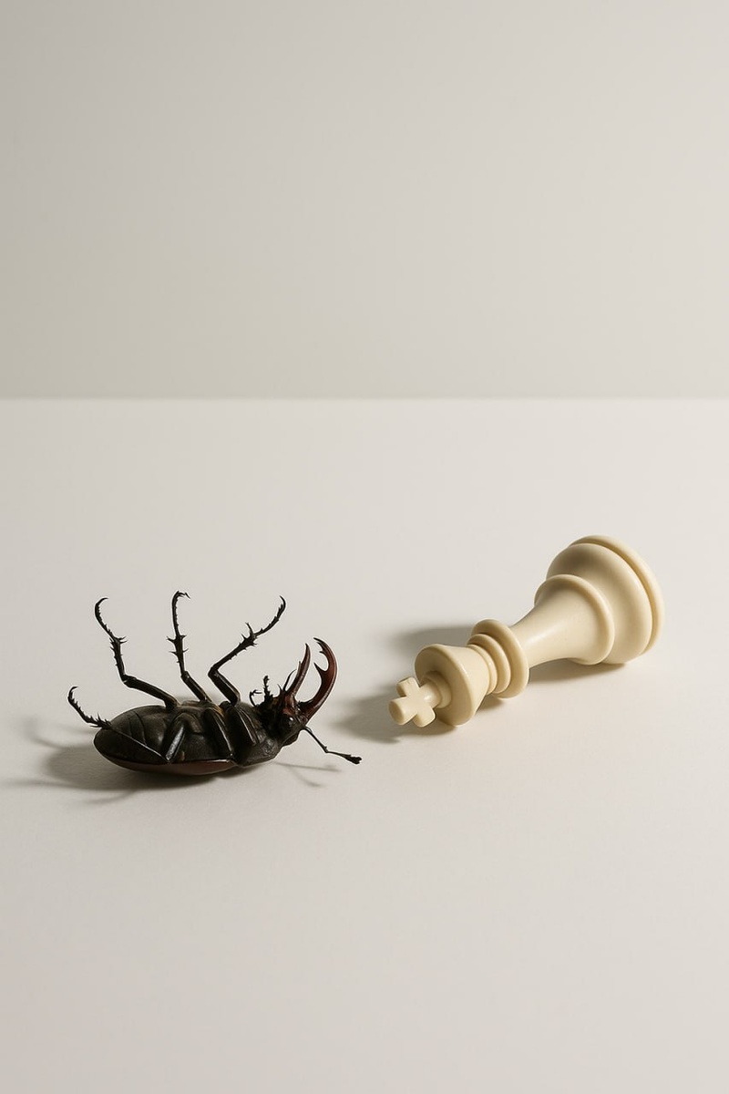 Он наблюдал за жуком, который отчаянно боролся, чтобы перевернуться и встать. Добился своего, выглядел победоносно и… отправился дальше, с примесью самодовольства и разочарования. Жизнь снова стала бессмысленной. И он, возможно, подсознательно ищет новую борьбу, чтобы повторить этот триумф.