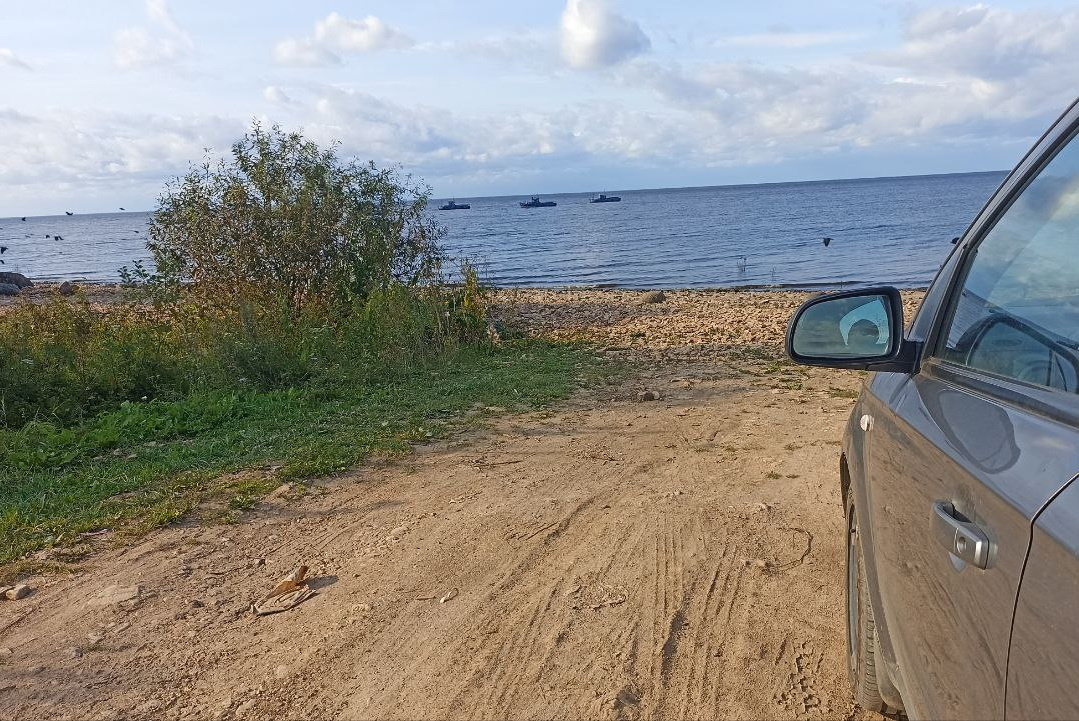 После поворота опять ехала по каким-то дорогам, но тут мне повезло или навигатор сработал лучше, наконец-то я выехала на побережье и это того стоило. Простор, небосвод, облака, солнце ласковое и почти напротив дороги на якоре стояли рыболовецкие катера, наверное. Волны плещут, никого нет и такая свобода. Я как в транс провалилась, даже гулять по берегу не хотелось. Кстати, берег каменный, но камень плитняк, валуны сврху встречаются. Плоские плитки трескаются прямоугольником. Сразу и не верится что это природное явление, местами ровненько так и можно идти как по тротуару. Птицы летают, грачи, вороны, галки. Я так и просидела на камне до отьезда, думая ни о чем.