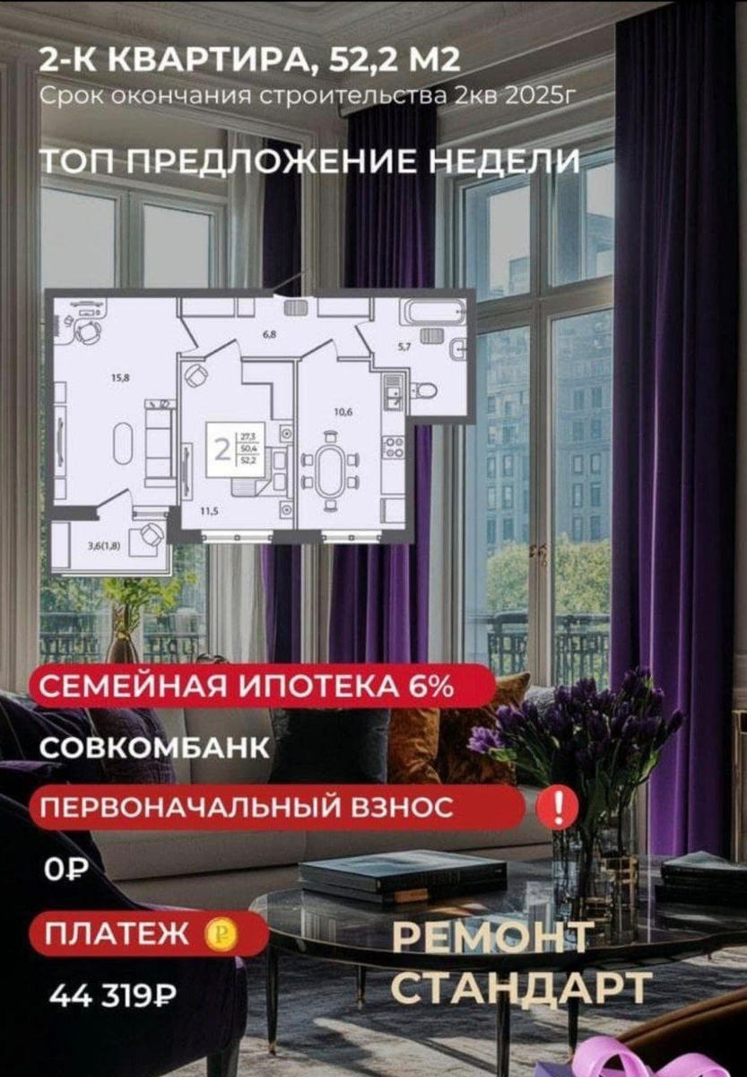 Вчера удивляли вас однокомнатной без первоначального взноса. Готовьтесь к новому шоку! 💥 📍 Краснодар, 2-комнатная квартира с ремонтом. БЕЗ ПЕРВОНАЧАЛЬНОГО ВЗНОСА. Мы знаем, как сложно решиться на первый шаг к собственной квартире, особенно семье. Поэтому мы нашли решение, которое делает мечту реальностью! 🏡 🌟 Это предложение для вас, если: ➡️ Вы устали от аренды и хотите свой угол. ➡️ Вы молодая семья и ищете свой первый дом. ➡️ Вы считаете каждый рубль и ищете самую выгодную сделку. ✔️0 рублей на старте — самое сложное уже преодолено за вас. ✔️Ремонт — не нужно вкладываться сразу после покупки. ✔️Краснодар — стремительно растущий город, выгодная инвестиция в будущее. ✔️Две комнаты — простор для вас и ваших близких. Таких условий на рынке почти НЕТ. Это шанс, который выпадает раз в сотню сделок. Не упустите возможность подарить своей семье безопасность и уверенность в завтрашнем дне. ❤️ 📌 Готовы узнать все детали? Пишите или звоните прямо сейчас! Консультация ни к чему вас