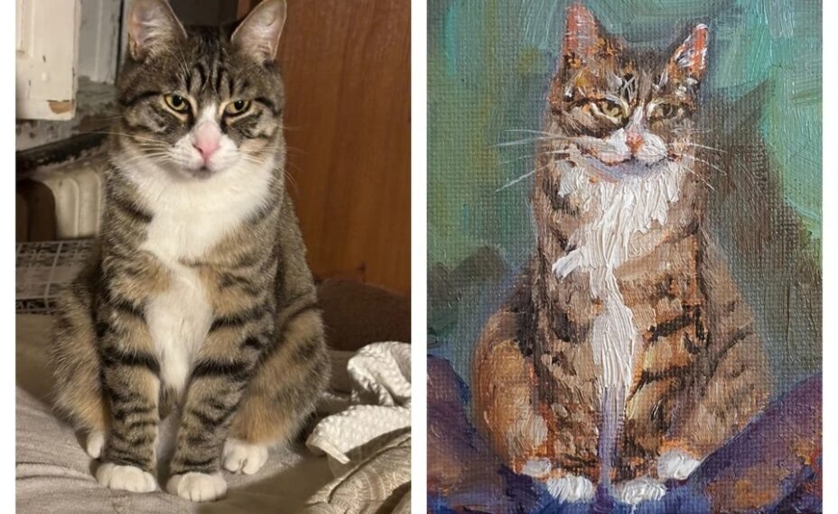 Хозяйка кота заказала художнице несколько портретов своего пушистого любимца