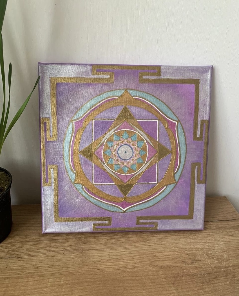 Янтра планеты Венера 🌸 Холст 30х30 см, акриловые краски. Завершена символично, в пятницу - день Венеры. Янтра Венеры. Про красоту внутреннюю и в внешнего пространства. Красота Тела, Души, Духа. Вдохновение творить. Про Любовь . Янтра Венеры не только про духовную красоту, но и про материальную . Поо красоту материи, красоту физического тела. Красоту пространства, материальных вещей. Наличие такого инструмента в своем доме, для тех, у кого планета Венера ослаблена - чудесный вариант прокачать и усилить ее. Цветовое сочетание - будет рождаться индивидуально для конкретного заказчика/заказчицу 🙏 Как вам моя первая янтра Венеры?