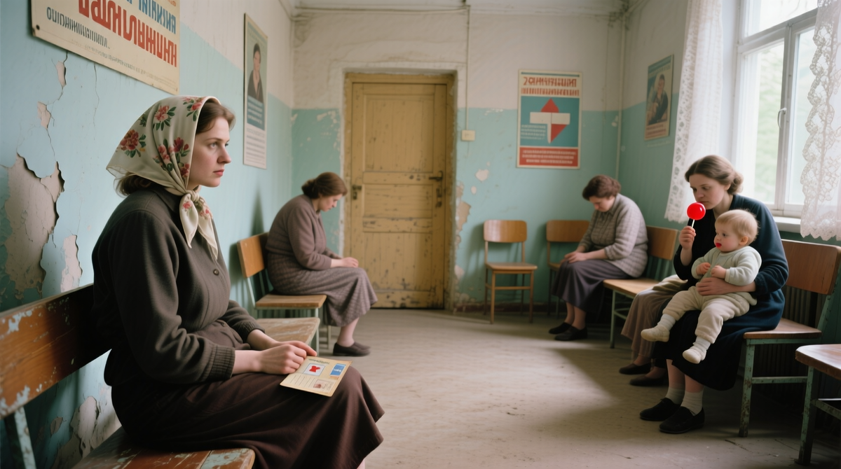 Внутри пахло хлоркой и чем-то кислым. Очередь сидела на лавках вдоль стены, как в вокзале. Кто-то спал, кто-то листал ветхий журнал «Работница». Кто-то просто смотрел в пол, будто пытаясь прожить это утро как можно тише.