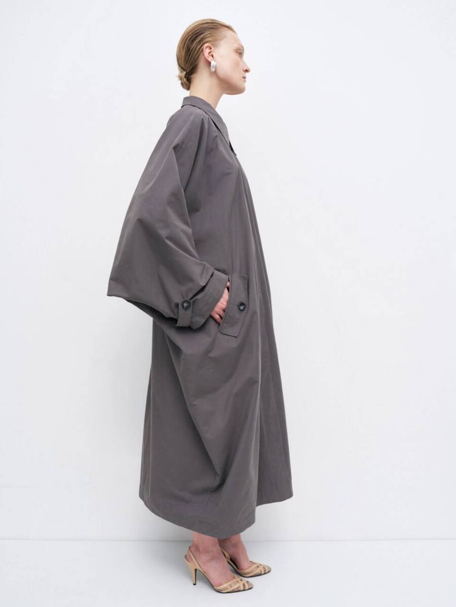 Судя по новым коллекциям и появляющимся брендам, осень нам не страшна! Серый пыльник D-образного силуэта из раздела «скоро в продаже» у Sanchy, дымчатый плащ Ruee и асимметричный тренч оливкового цвета Ivolga — вот она, тройка лидеров наступающего сезона
