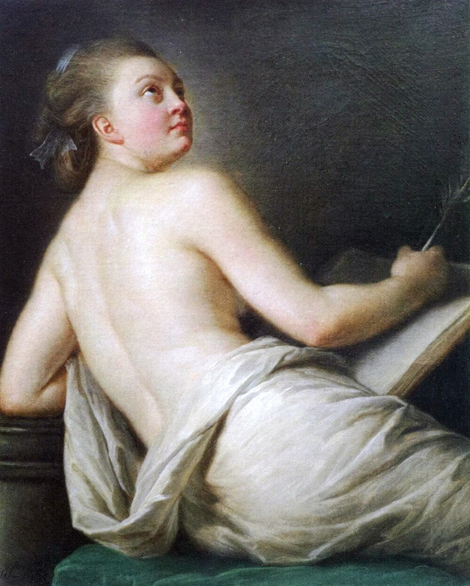 В 1774 году судебные приставы опечатали мастерскую Мари-Элизабет-Луизы Виже-Лебрён (1755–1842) в отеле де Любер на улице Клери под предлогом того, что она профессионально занималась живописью, не будучи принятой в гильдию. Поэтому она обратилась в Academie de Saint-Luc, членом которой был её отец. Официальная церемония приёма её и её подруги Анны Розалии Бокке (1752–1794) состоялась лишь 25 октября, но уже 25 августа они и их соперница Аделаида Лабиль-Гиар (1749–1803) оставили за собой право выставлять свои работы в Салоне этого учреждения, проходившем в Hotel Jabach. Вклад Луизы Виже в экспозицию был значительным (номера 169–175 в ливрете), но большая часть тех работ, к сожалению, утрачена. Только три аллегории искусств — Живопись, Поэзия и Музыка — представлены в списках работ художницы в конце первого тома её «Воспоминаний». В ливрете 1774 года все три работы были каталогизированы под одним номером: Par Mademoiselle Vigée. . . .