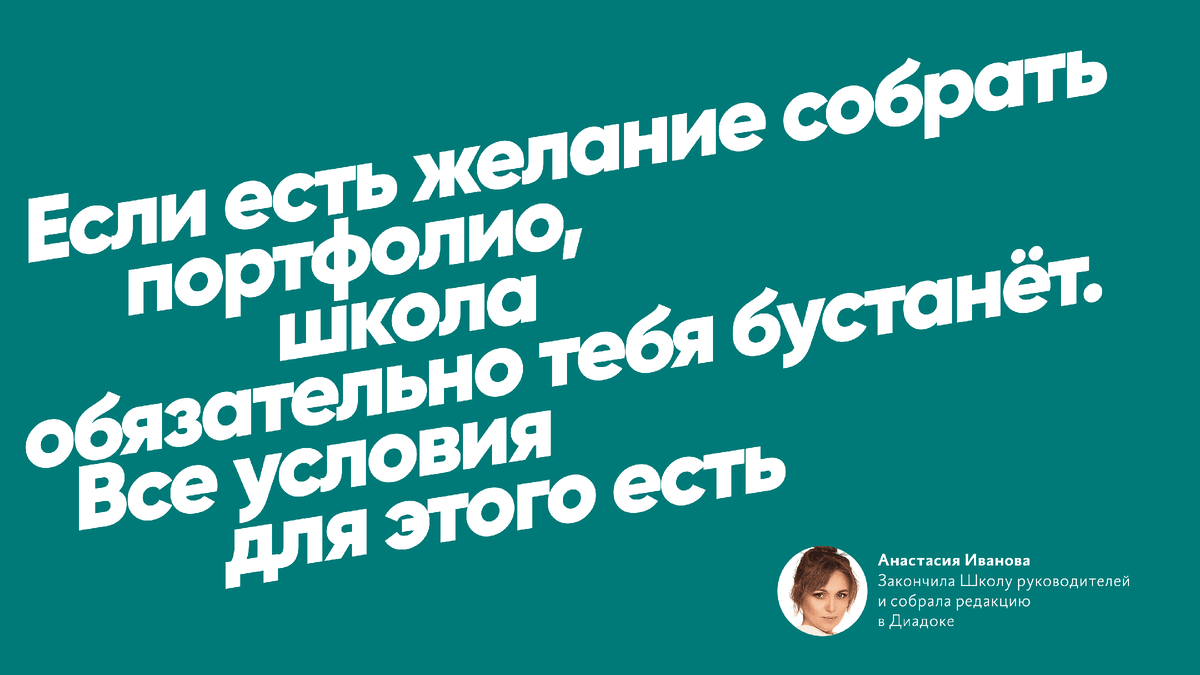 Анастасия Иванова закончила 20 поток Школы руководителей и собрала редакцию в Диадоке.