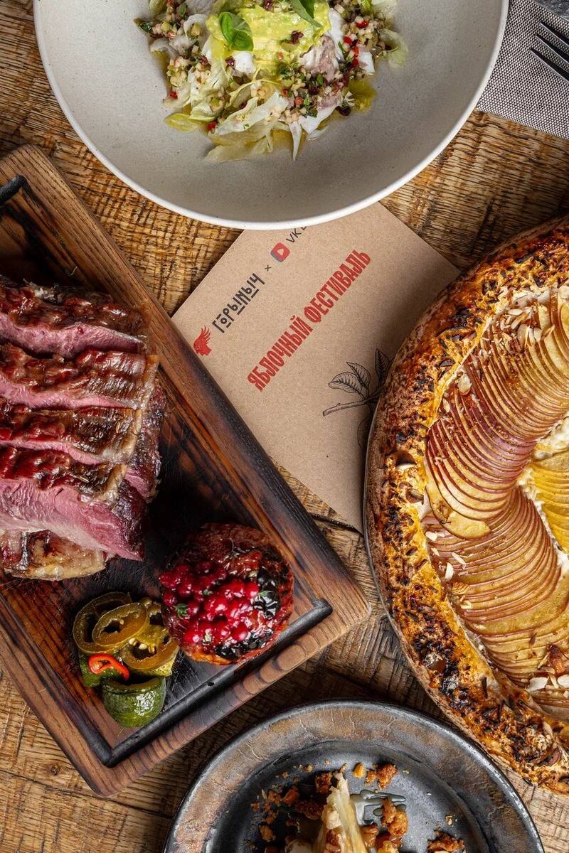 🍎 VK Видео × «Горыныч» — Яблочный фестиваль 18–24 августа во трех «Горынычах» — в Москве, Сочи и Геленджике Яблоко в меню — во всех ипостасях: от рыбы и рёбер до десертов и коктейлей. А в каждом меню — QR-коды с рецептами от наших шефов и блогеров VK Видео Фестивальное меню: Дорадо с капонатой и яблоком — 1090 ₽ Копчёные говяжьи рёбра с печёным яблоком — 1390 ₽ Пицца «Дольче» с медовыми яблоками — 850 ₽ Шарлотка с ванильным мороженым и яблочной карамелью — 650 ₽ Коктейли: Яблоко-клюква-корица — 870 ₽ Яблоко-лайм (безалк.) — 510 ₽ 📍 Москва, Рождественский бульвар, 1 📍 Сочи, пер. Ривьерский, 7 📍 Геленджик, ул. Революционная, 2/1 📅 18–24 августа #gorynich