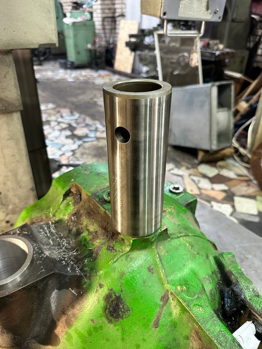 В ответ на пост Продолжение ремонта John Deere. После установки втулки, ставлю деталь на станок. Центруюсь и начинаю растачивать под палец (шкворень). Фото 1. Палец. Так вот выглядит сам палец, ну или шкворень, кто как называет. Фото 2, 3. Расточка. На фото втулка уже расточена для посадки пальца. Натяг на палец оставил 4-4,5 сотки. Будем сажать на горячую. Еще у пальца есть отверстие, которое нужно будет сделать и во втулке, для штифта. Видео 4, фото 5. Обнижение. Обнижаю втулку до плоскости, сначала просто плоским резцом. Потом будем планировать плоскость. Видео 6, 7. Планирую. Г-образным резцом фрезерую плоскость, чтобы втулка была в плоскости самой детали, не выше, не ниже. Фото 8. Плоскость. На фото видно готовую плоскость. Это было конечно не так важно сделать, просто захотел навести красоты))) После всех этим манипуляций, сверлим отверстие сверлом на 19. Как отверстие готово, снимаем внутри фаску и немного подчищаю наждачкой. Как это готово, начинаем греть деталь и иногд