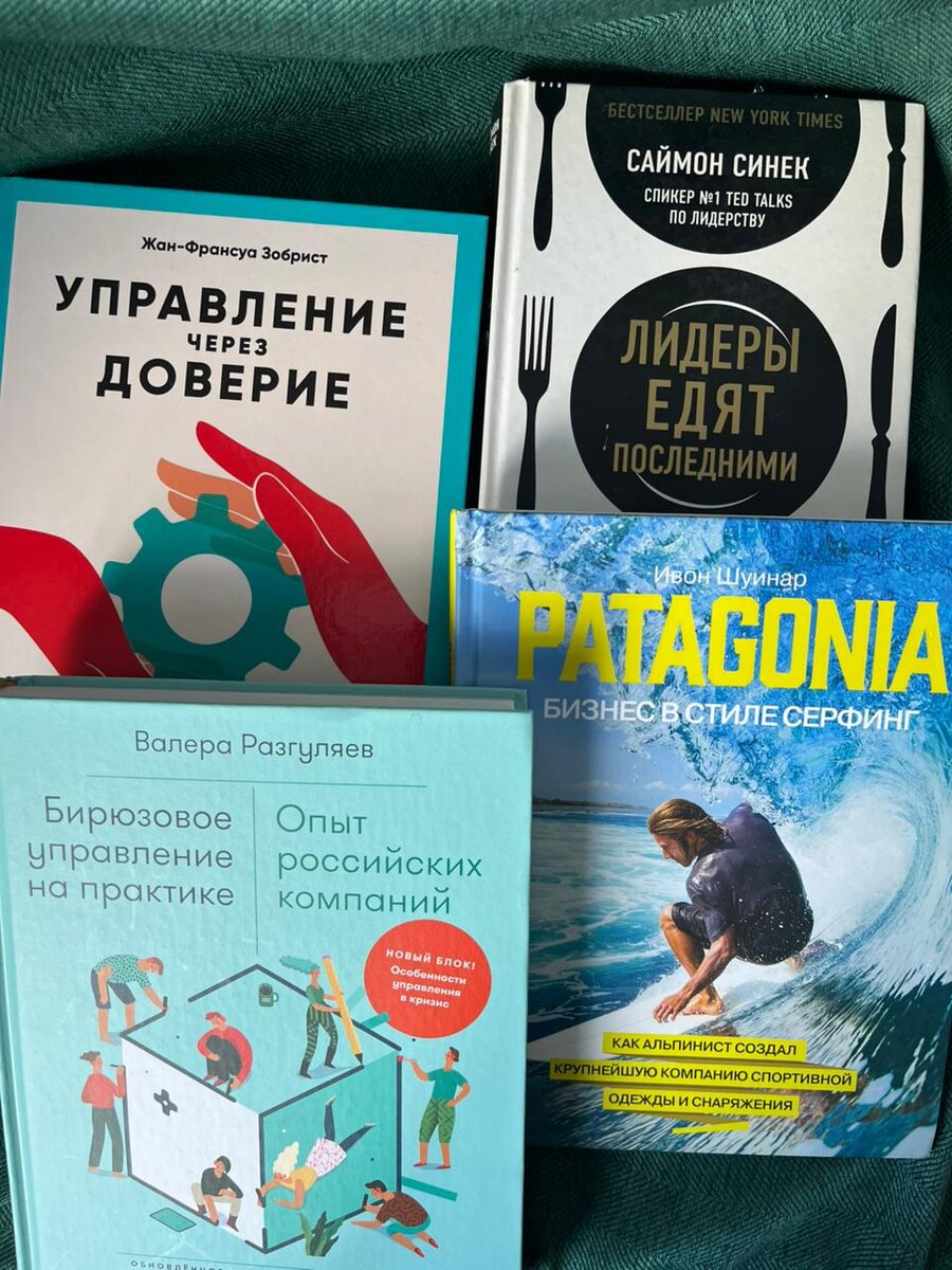 1. "Пять пороков команды" Патрика Ленсиони Не про сложные теории, а про человеческие слабости, которые рушат любую команду: недоверие, страх конфликта, отсутствие ответственности. Читается на одном дыхании в формате бизнес-притчи. После неё вы по-новому посмотрите на совещания. 2. "Лидеры едят последними" Саймон Синек Описанная концепция «круга безопасности» помогает создать среду, где люди не боятся рисковать и расти. 3. "Patagonia: бизнес в стиле серфинг" — Ивон Шуинар Основатель Patagonia доказал, что бизнес может быть прибыльным и человечным. 4. "Управление через доверие" — Жан-Франсуа Зобрист Книга — подробное руководство по построению системы менеджмента, где основа всего — доверие к людям и их автономия. 5. "Бирюзовое управление на практике" — Валера Разгуляев Российский опыт, как внедрить бирюзовые принципы в компании: от отказа от иерархии до формирования эволюционной цели. Практично и без воды.