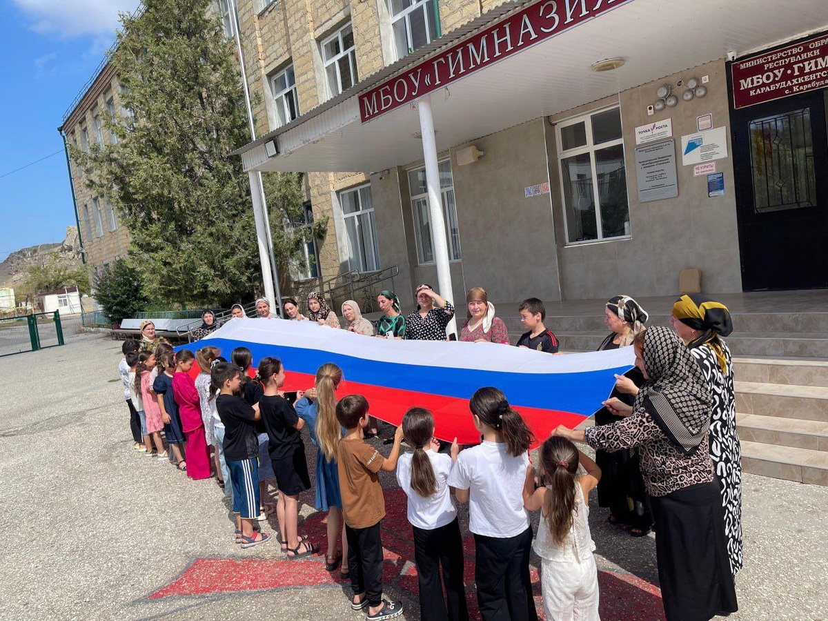 ⚡️Къарабудагъгент районну баш китапхасыны къуллукъчулары Къарабудагъгентдеги гимназияны охувчулары булан бирге , Россияны Пачалыкъ