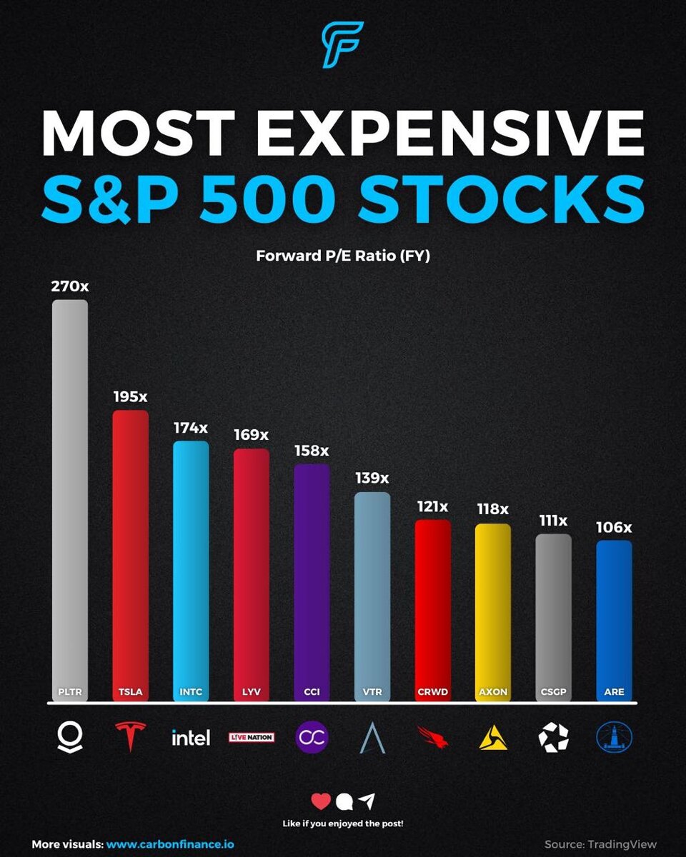 Примечательный график из самых переоцененных компаний S&P 500 по форвардному мультипликатору P/E