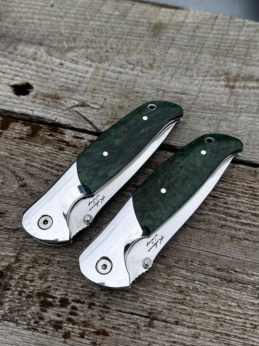 📸 Складной нож «Корвет» — в наличии 🌲 Лимитированная партия — открыта свободная продажа Идеальный выбор для охоты, рыбалки, туризма и коллекции. Основные преимущества — Клинок из инструментальной стали Х12МФ с криообработкой — Твердость 61–62 HRC — уверенно держит заточку! — Рукоять накладки из стабилизированной карельской берёзы глубокого зелёного оттенка. — Надёжный замок Liner-lock — максимально безопасно при любых условиях. — В комплекте — ножны из натуральной кожи Дополнительно можем изготовить формованные ножны (+8 000₽). Цена за первый и второй нож: ~9 980₽~ → 8 983₽ по акции 💬 Заказать просто • Пишите @Nazarklinokbot • WhatsApp/Viber: +7 910 134-38-31 #корвет #складнойнож #Х12МФ #карельскаяберёза #купитьнож #КузницаНазароваВВ