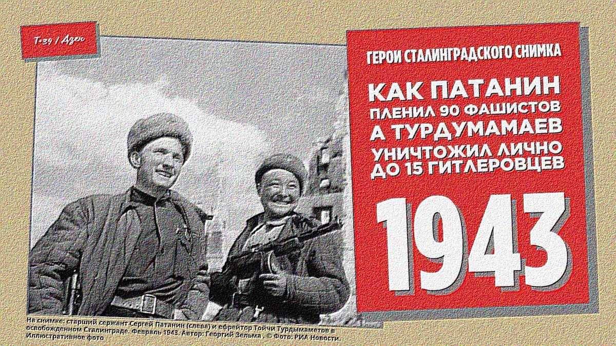 На легендарном снимке запечатлены воины 20-й истребительной бригады. Слева — помощник командира взвода старший сержант Сергей Патанин (именно так, а не Потанин, значится в наградных документах), уроженец села Антиповка Камышинского района Волгоградской области. Справа — боец расчёта противотанкового ружья Тайго Турдумамаев. Фотография была сделана, вероятно, 7 февраля или в ближайшие дни после того, как отважные бойцы получили свои первые награды. Этот момент запечатлел не просто двух солдат, а саму суть стойкости защитников города.