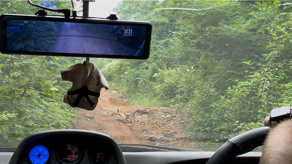 …Дорога действительно сложная, ехать по бурому грунту вперемежку с огромными камнями.