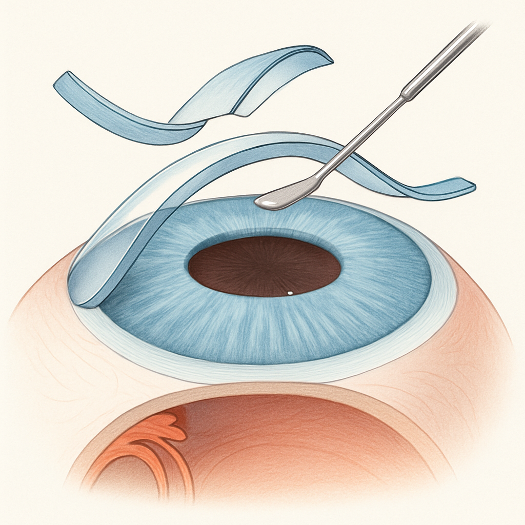 Операция проходит под местной анестезией и длится около часа. Пациент находится в сознании, но не испытывает никаких болезненных ощущений. Самый критический момент – это размещение ультратонкого трансплантата в передней камере глаза. Донорская ткань вводится в свёрнутом виде через небольшой разрез, а затем аккуратно разворачивается внутри глаза, как парашют в небе.