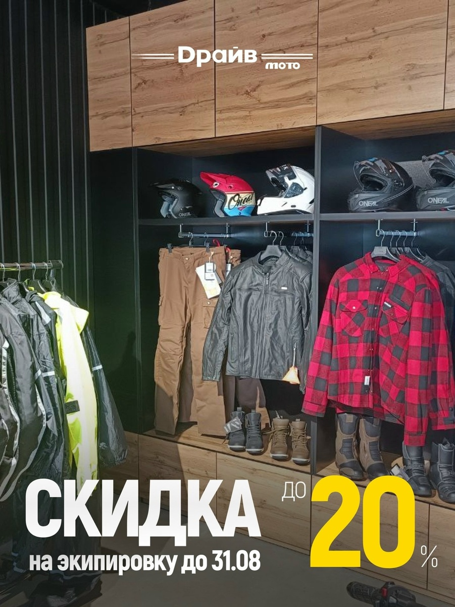 Шлемы, перчатки, защита и мотокуртки — всё, что нужно для комфортных и безопасных поездок. Скидки до 20% на весь ассортимент только до 31 августа! Это отличный шанс обновить свой гардероб байкера и сэкономить. Экип есть в наличии в салоне — приезжай, примеряй и забирай своё! Адрес: Ярославль, мотосалон Драйв Мото Пиши нам в сообщения vk.me/drivemoto_yar, расскажем, что есть прямо сейчас.