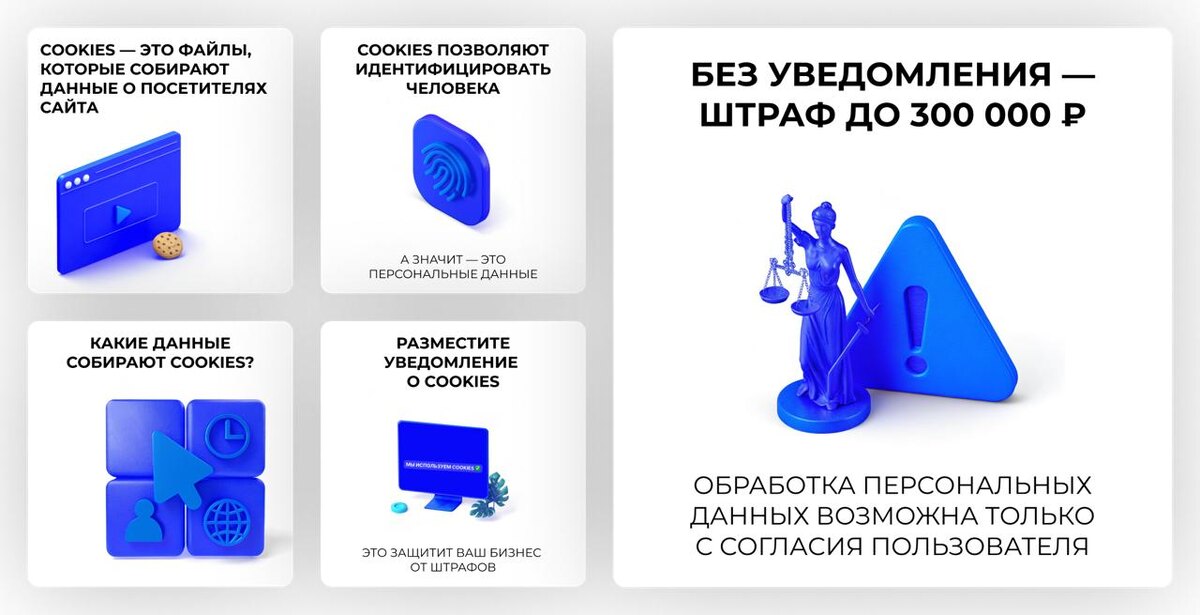 • ⚖️ “Cookies и закон”: серия карточек объясняет, зачем уведомление о cookies обязательно и как оно защищает бизнес.